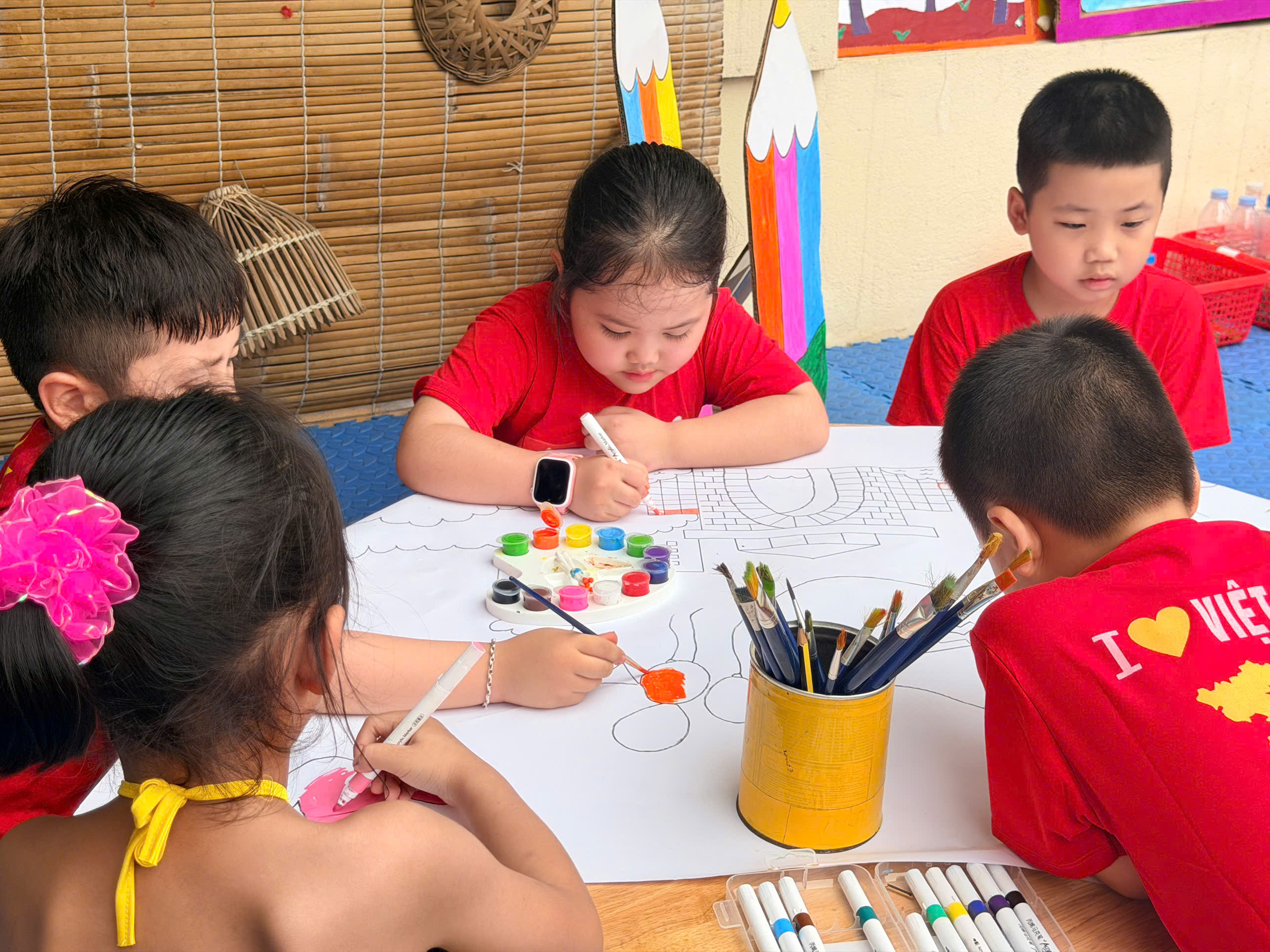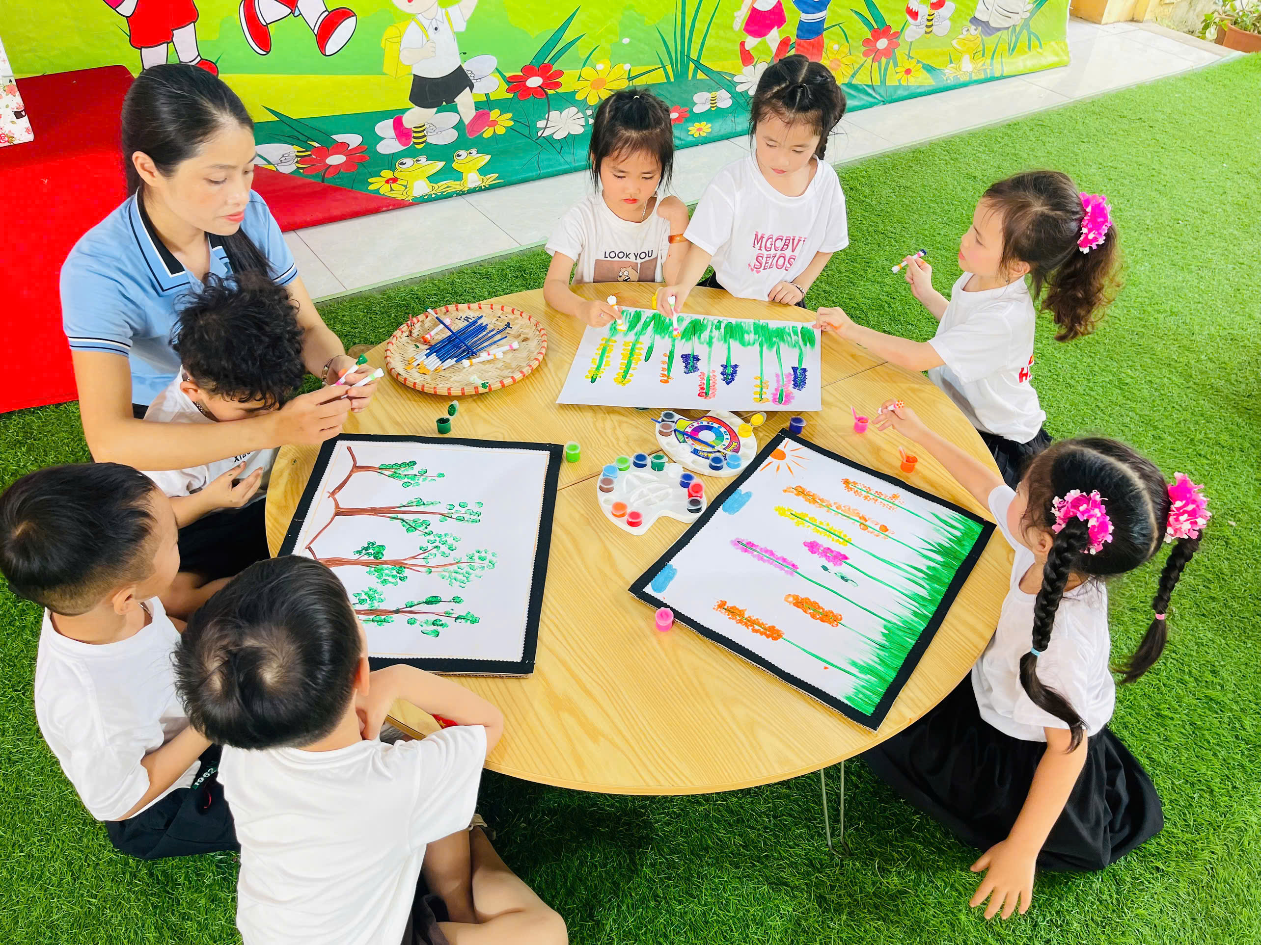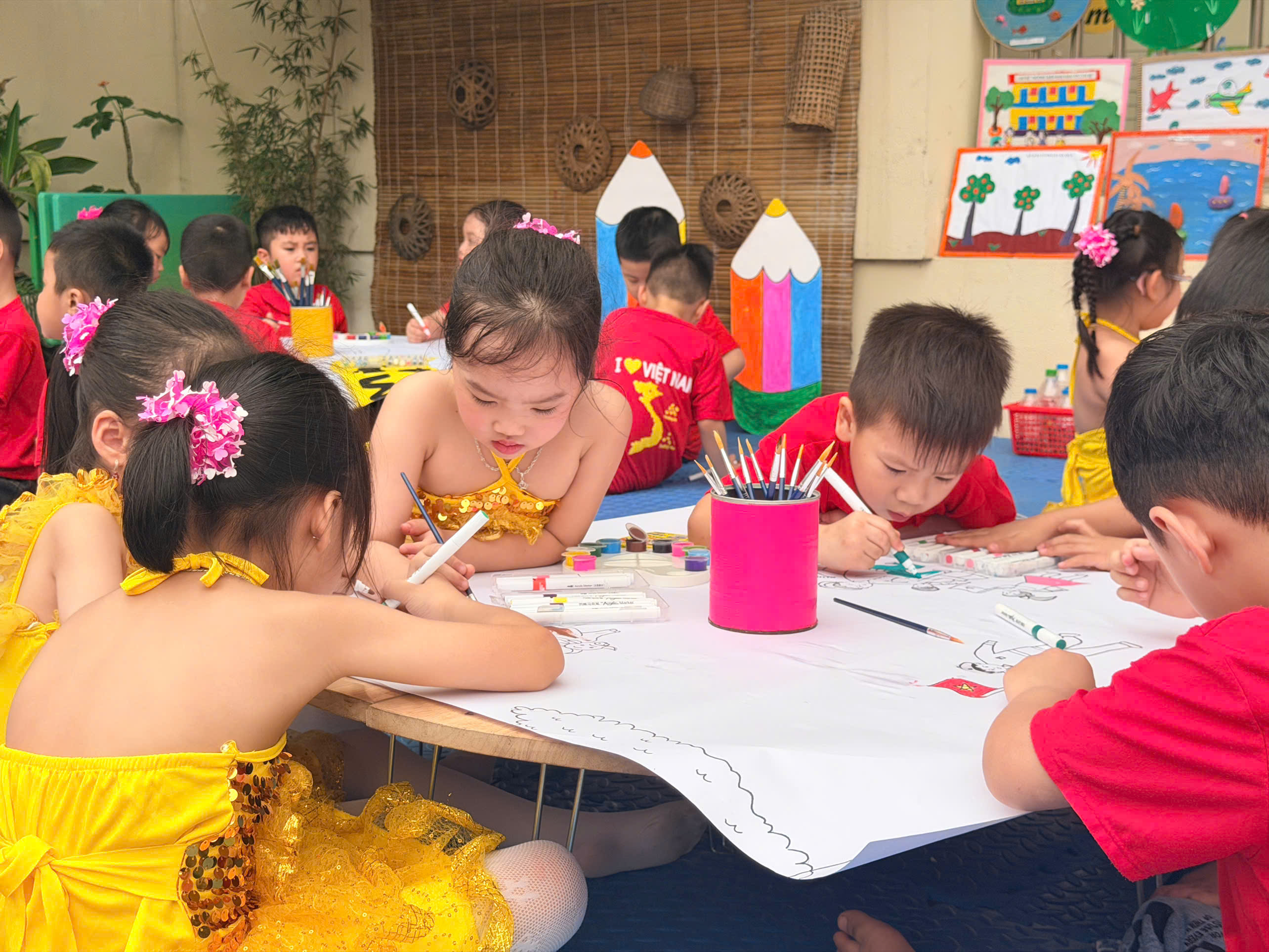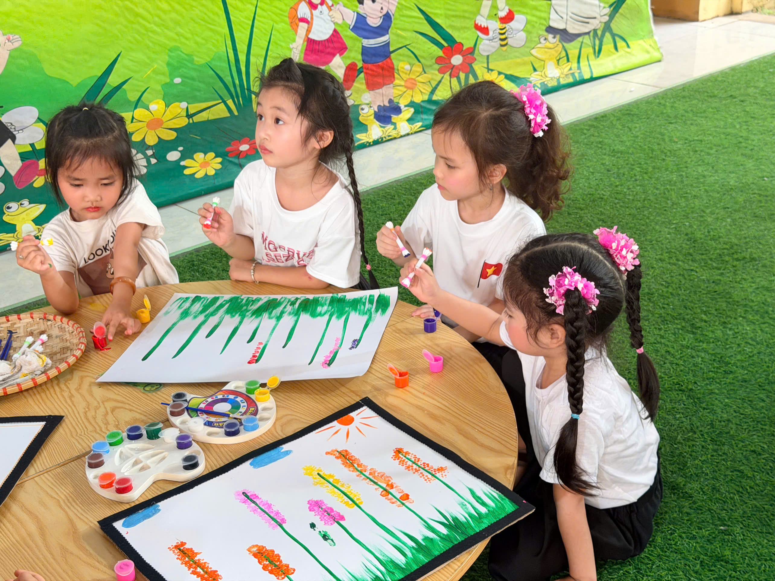 🎨 Không thể thiếu hoạt động sáng tạo tranh, nơi các con được tự do thể hiện trí tưởng tượng phong phú qua từng gam màu tươi sáng. Mỗi bức tranh là một câu chuyện nhỏ đầy ngộ nghĩnh và sáng tạo.