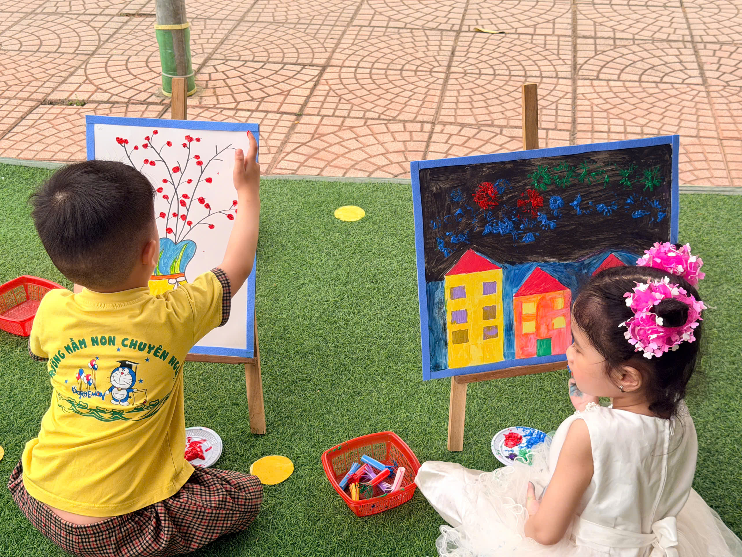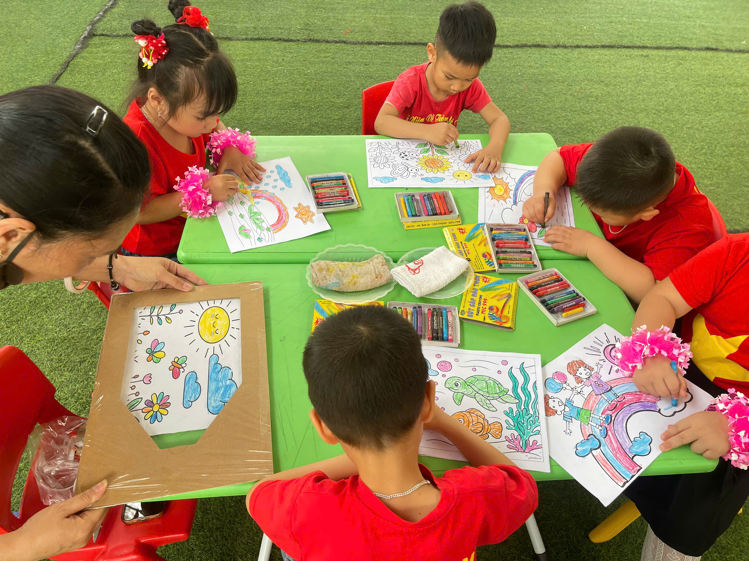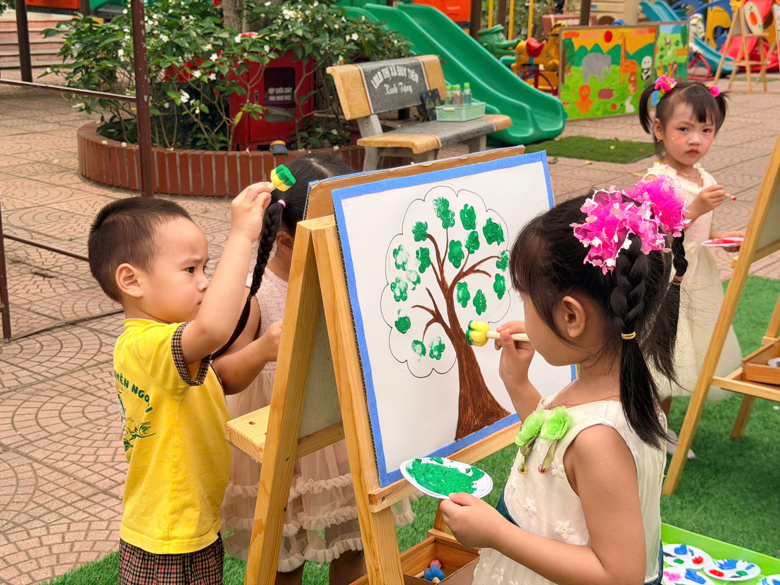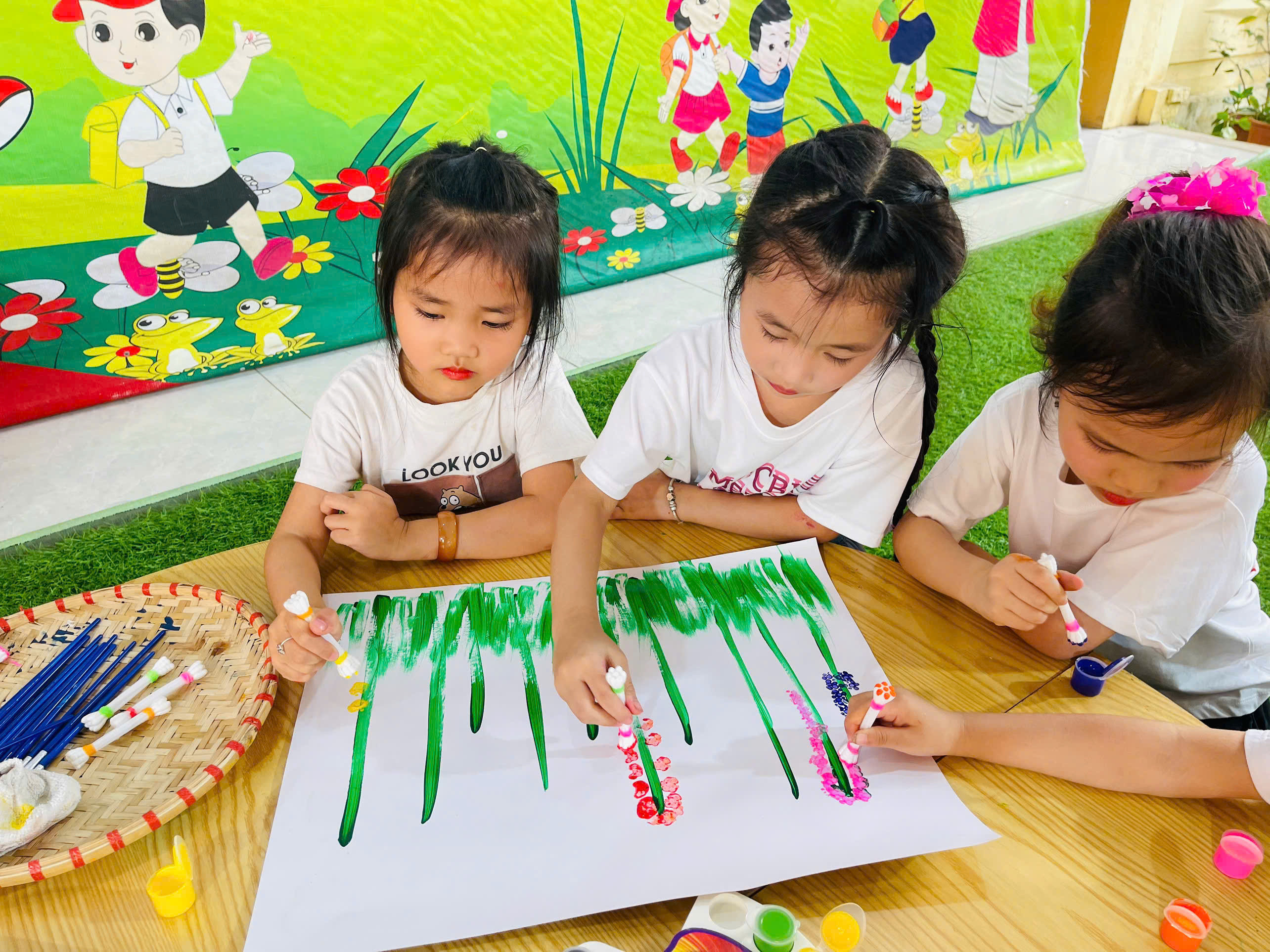 🎨 Không thể thiếu hoạt động sáng tạo tranh, nơi các con được tự do thể hiện trí tưởng tượng phong phú qua từng gam màu tươi sáng. Mỗi bức tranh là một câu chuyện nhỏ đầy ngộ nghĩnh và sáng tạo.