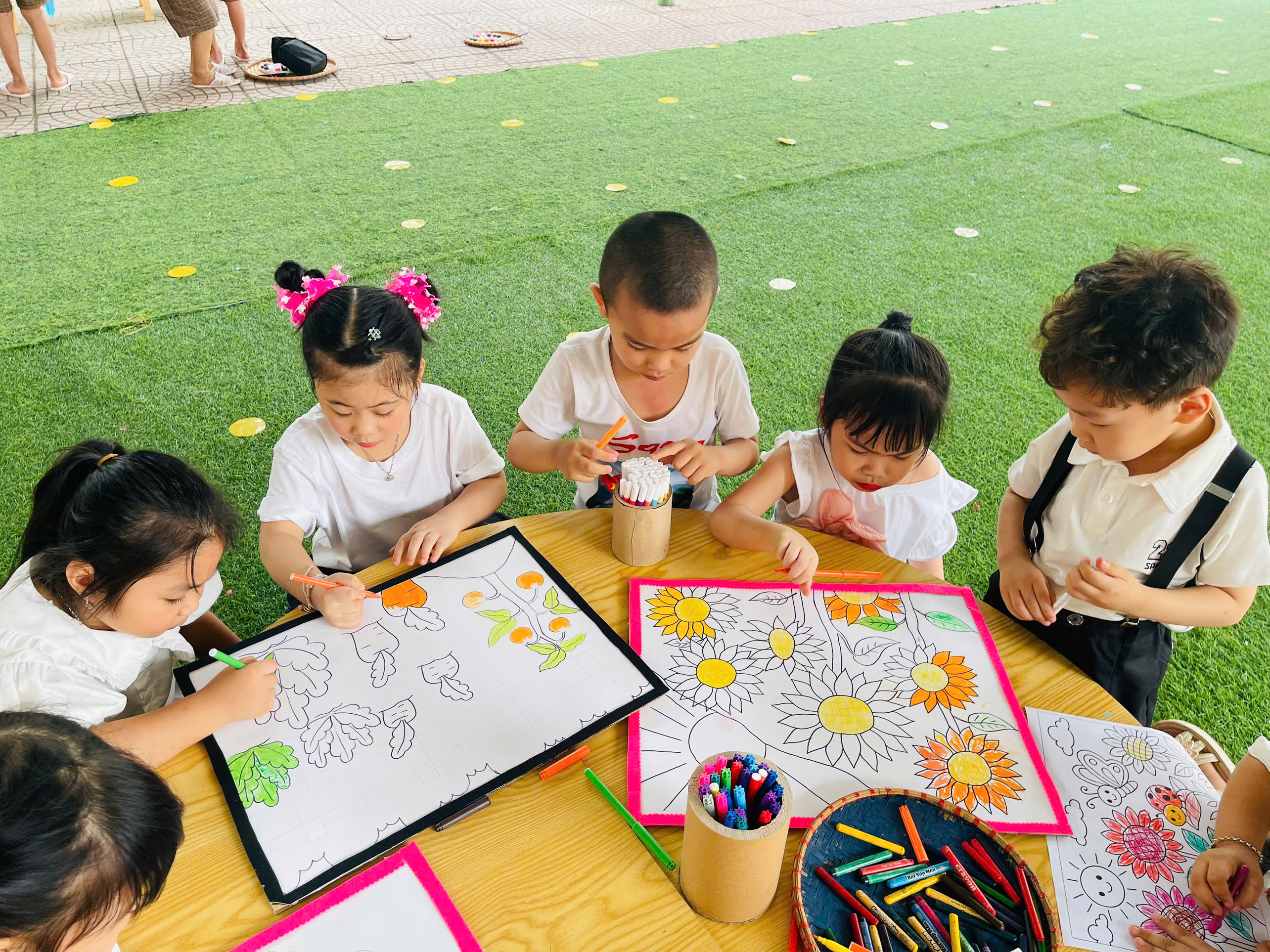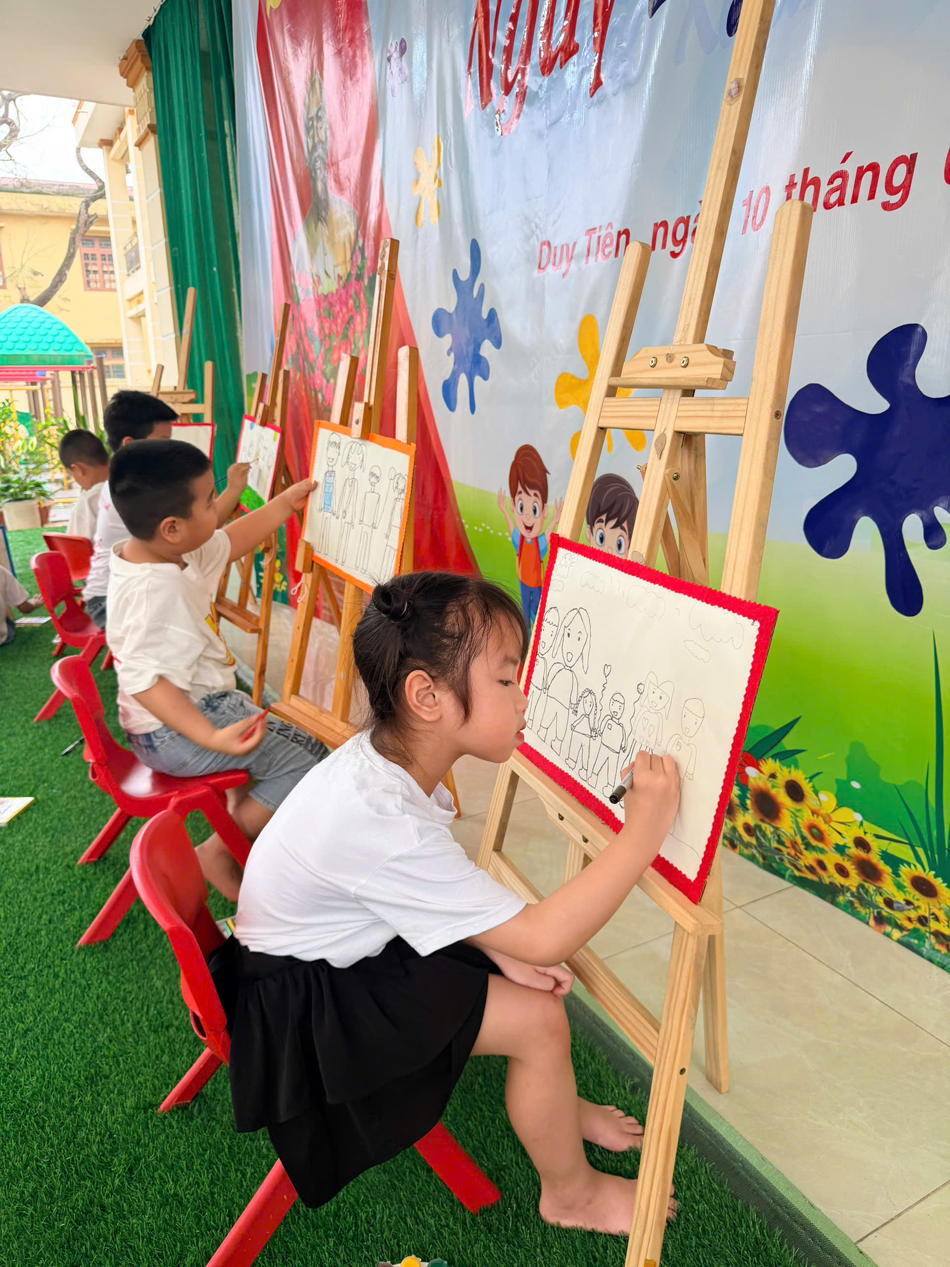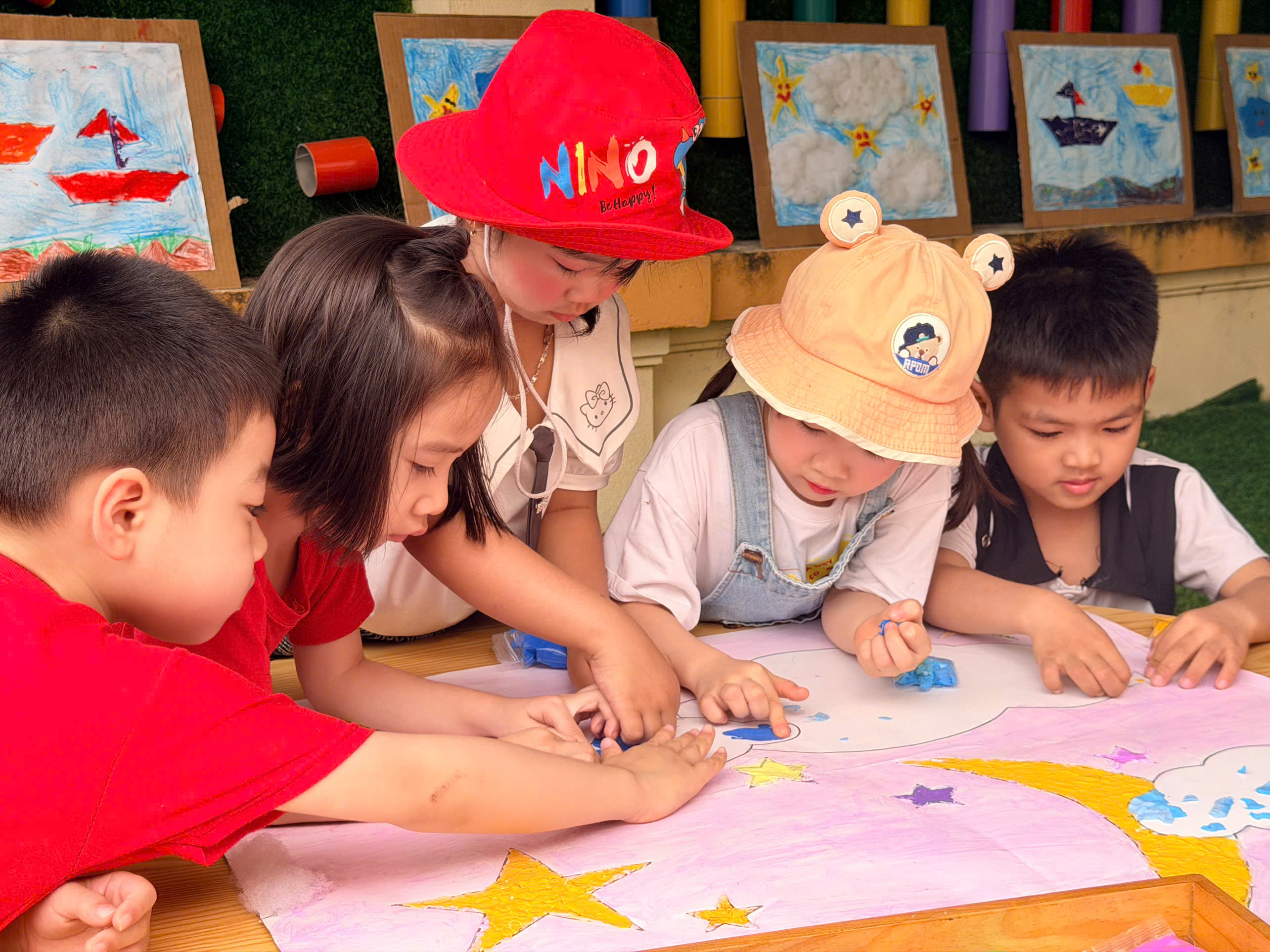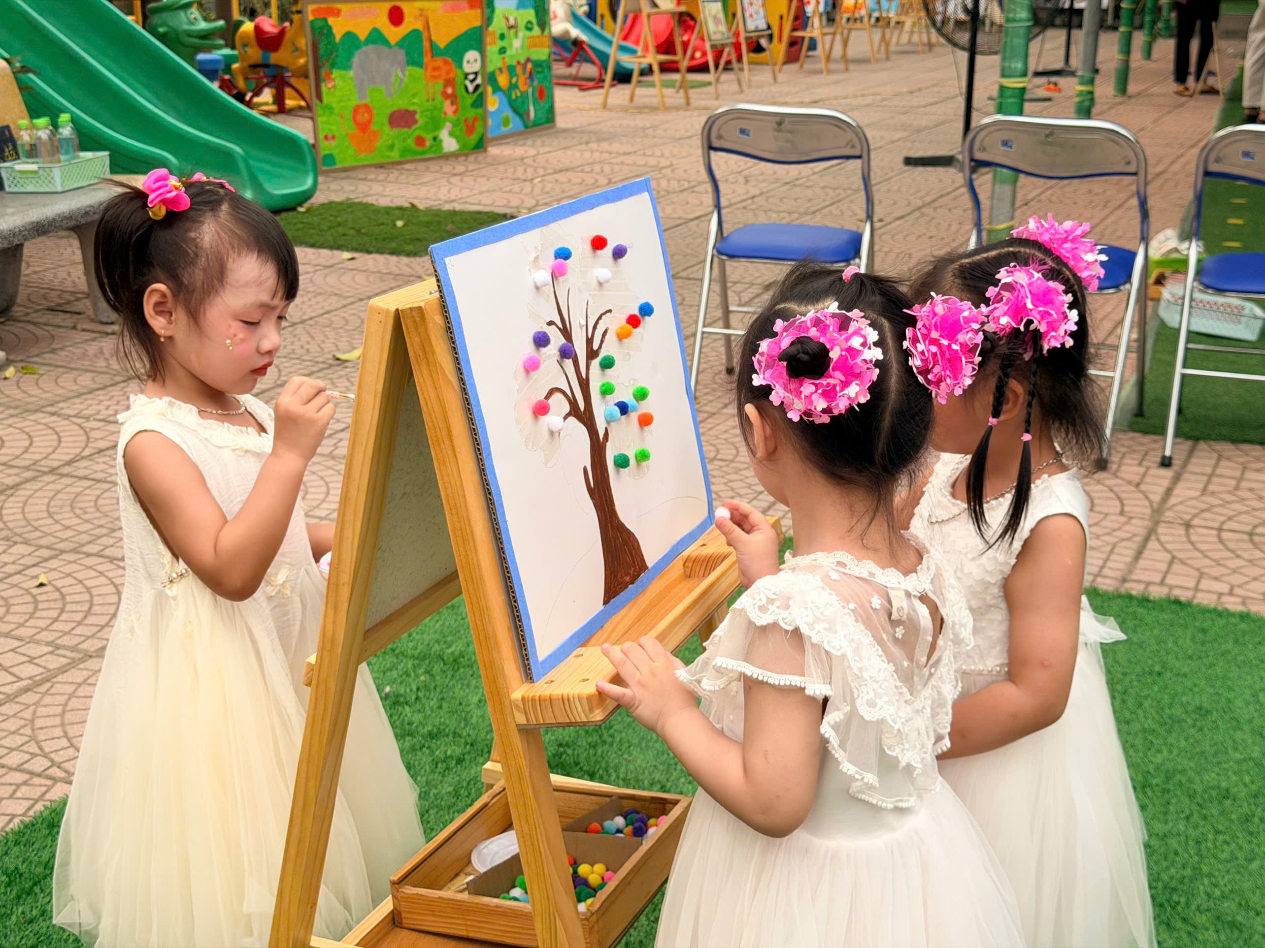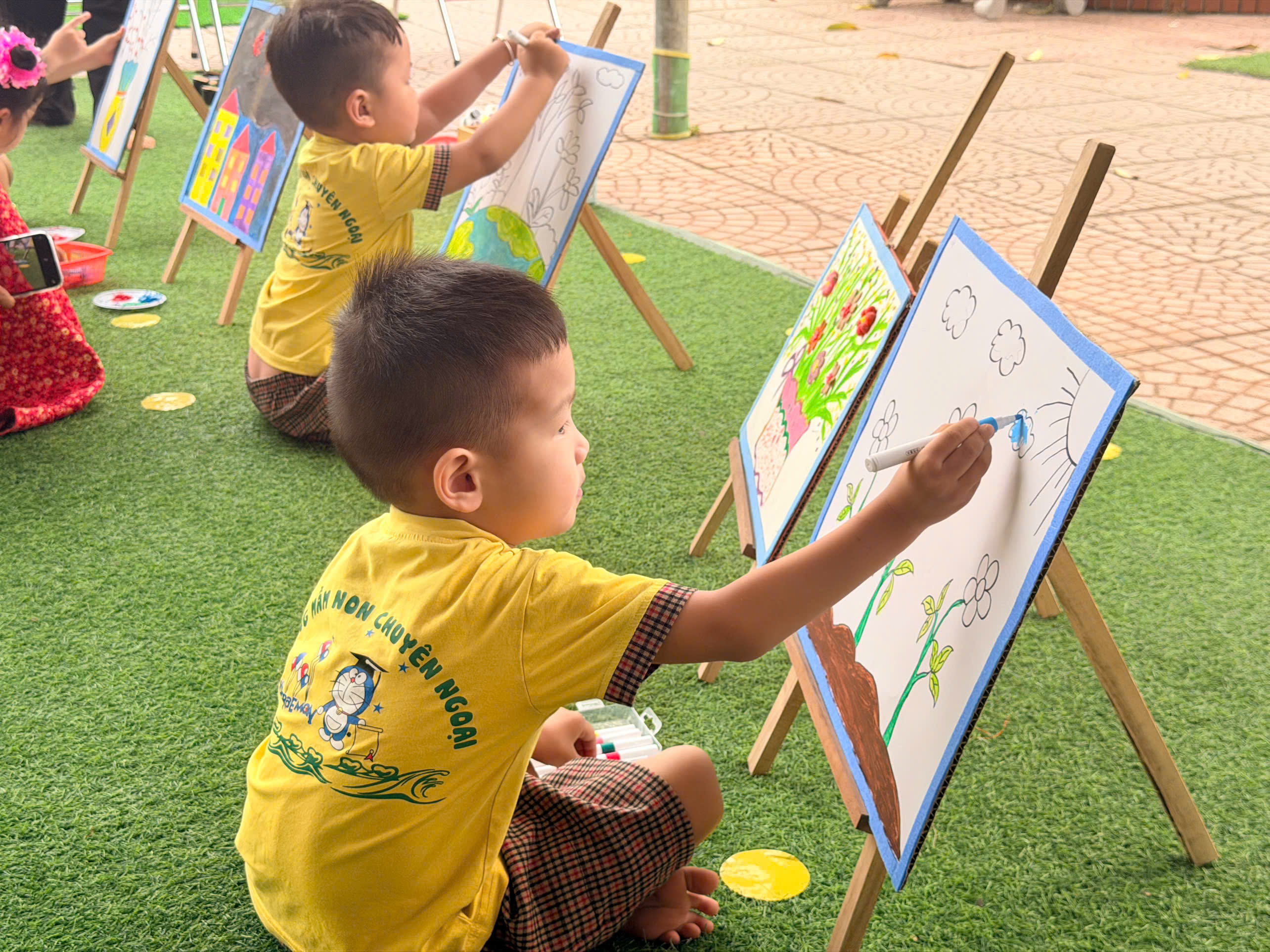 🎨 Không thể thiếu hoạt động sáng tạo tranh, nơi các con được tự do thể hiện trí tưởng tượng phong phú qua từng gam màu tươi sáng. Mỗi bức tranh là một câu chuyện nhỏ đầy ngộ nghĩnh và sáng tạo.