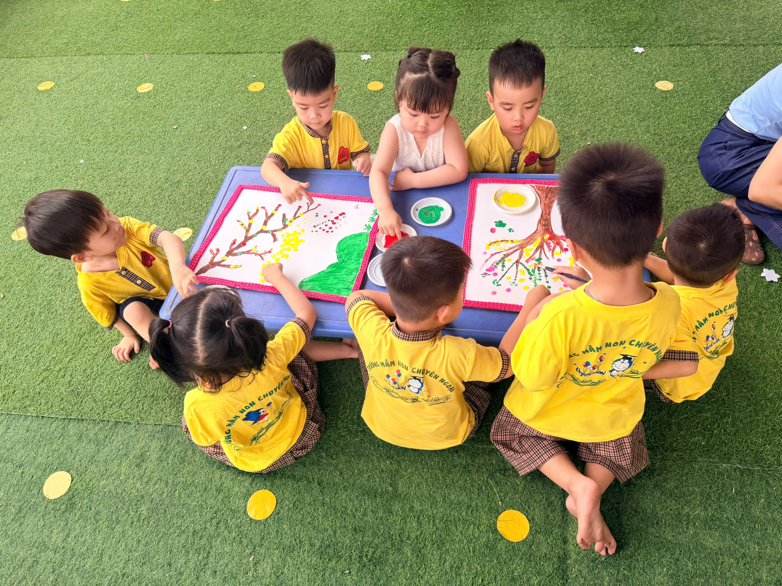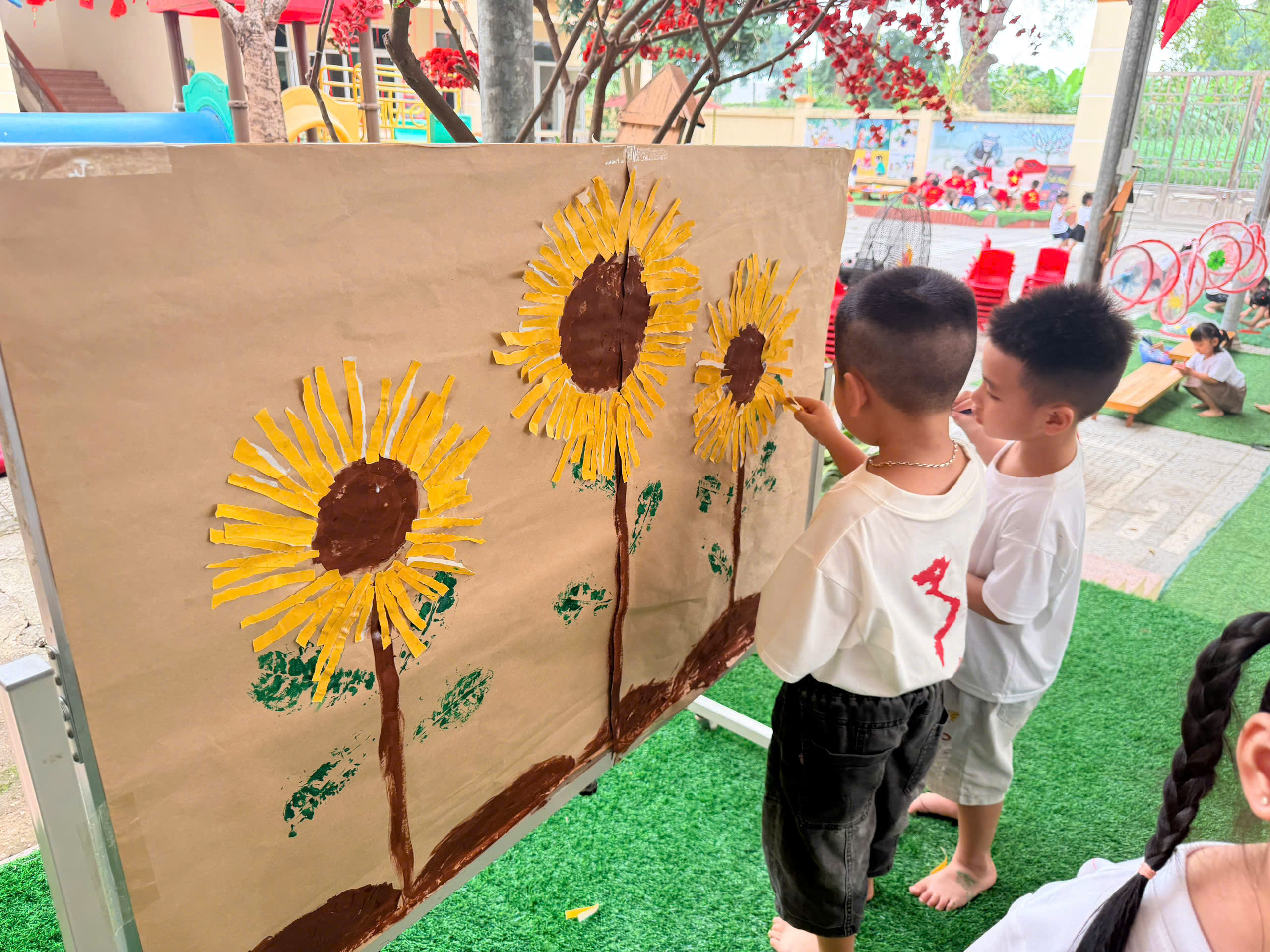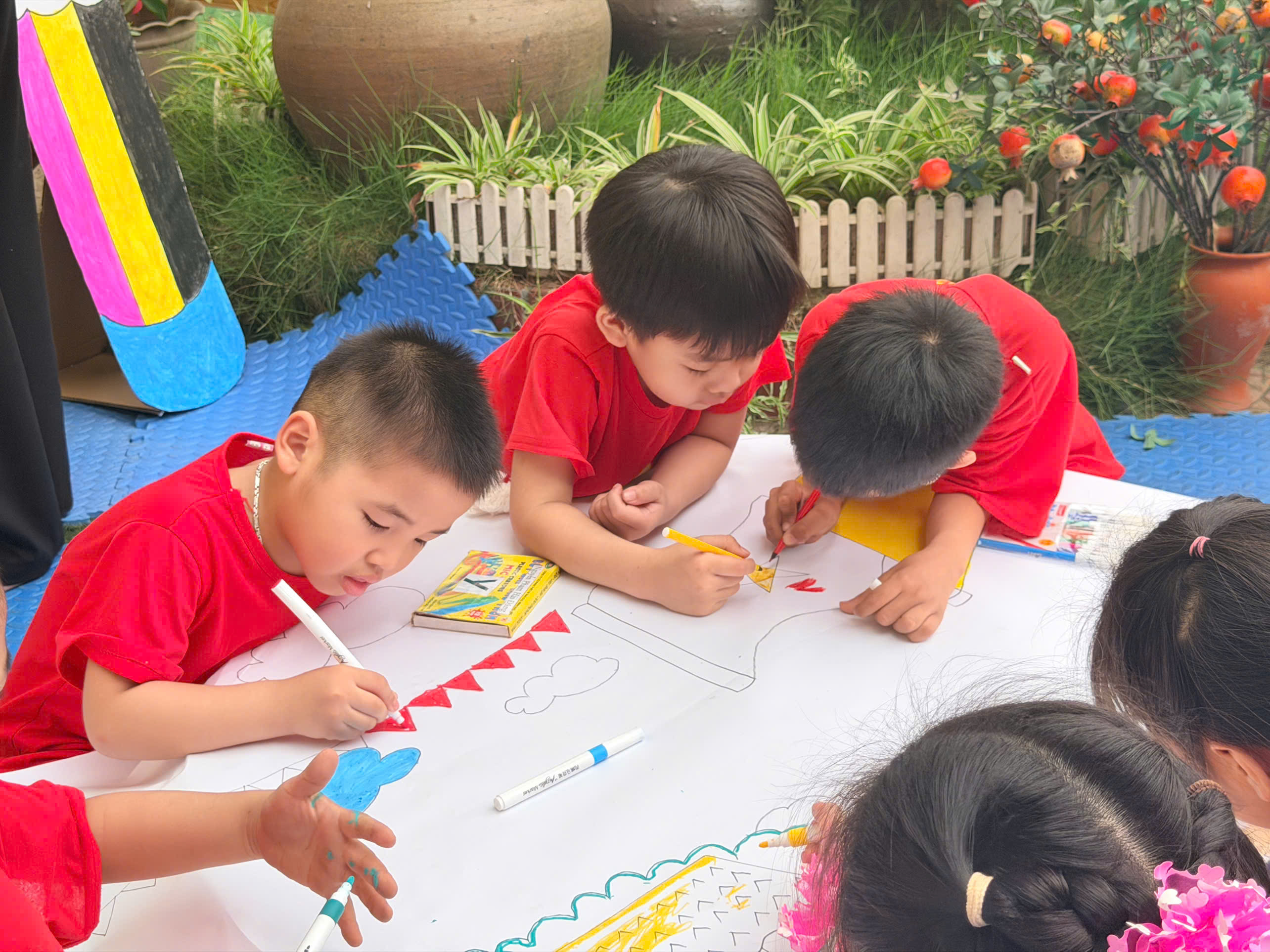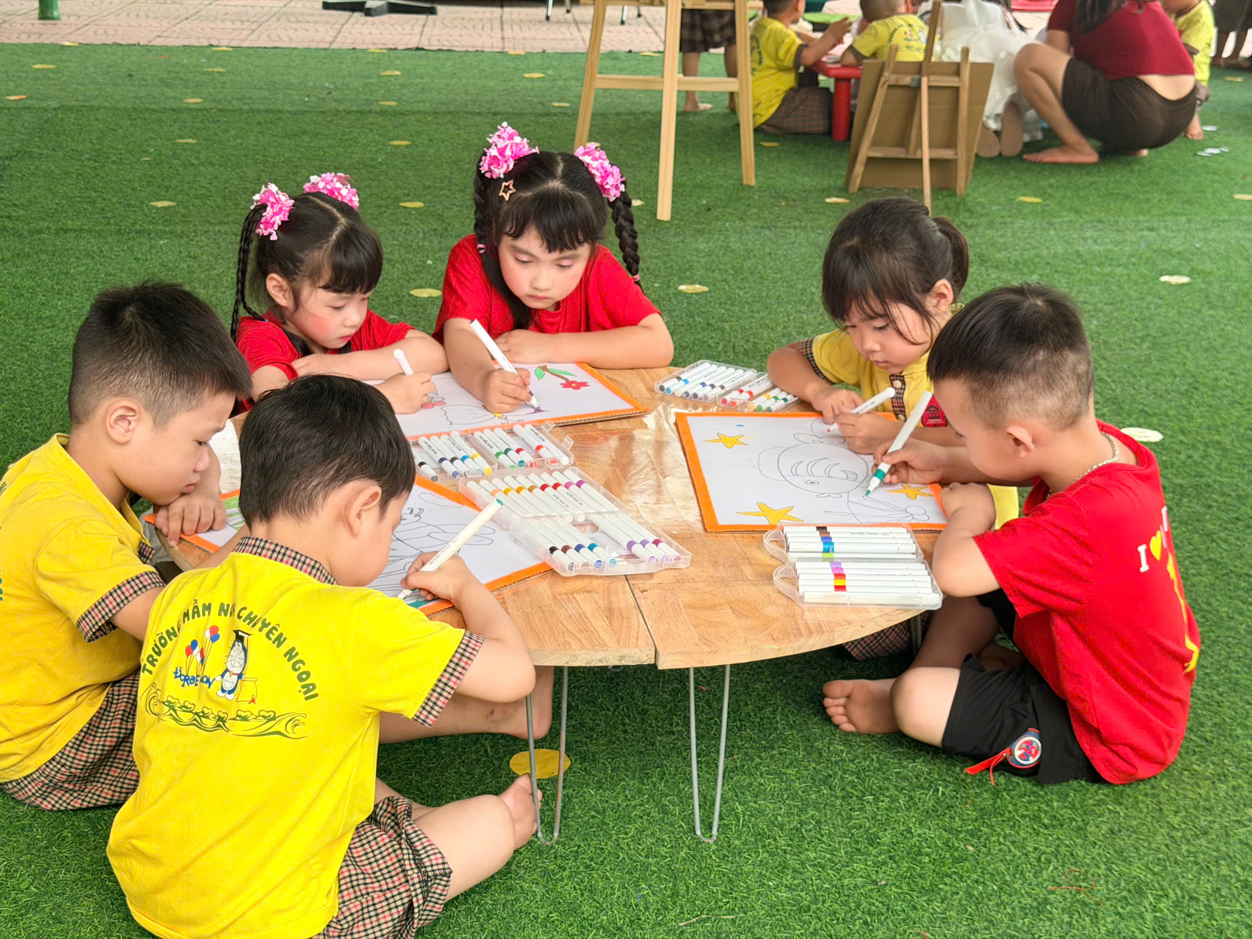 🎨 Không thể thiếu hoạt động sáng tạo tranh, nơi các con được tự do thể hiện trí tưởng tượng phong phú qua từng gam màu tươi sáng. Mỗi bức tranh là một câu chuyện nhỏ đầy ngộ nghĩnh và sáng tạo.