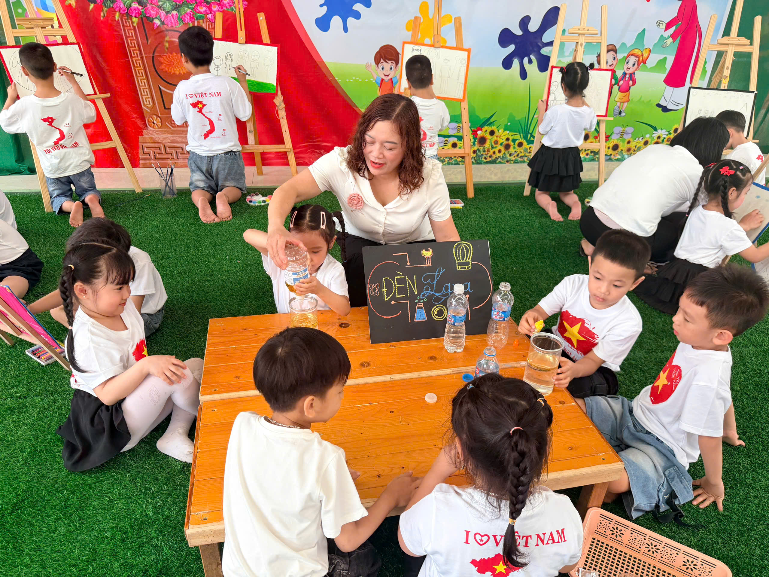 🧪 Đặc biệt, các bé còn được tham gia thí nghiệm với màu sắc – một hoạt động vừa học vừa chơi, giúp các con khám phá thế giới kỳ diệu của màu sắc một cách đầy thích thú.