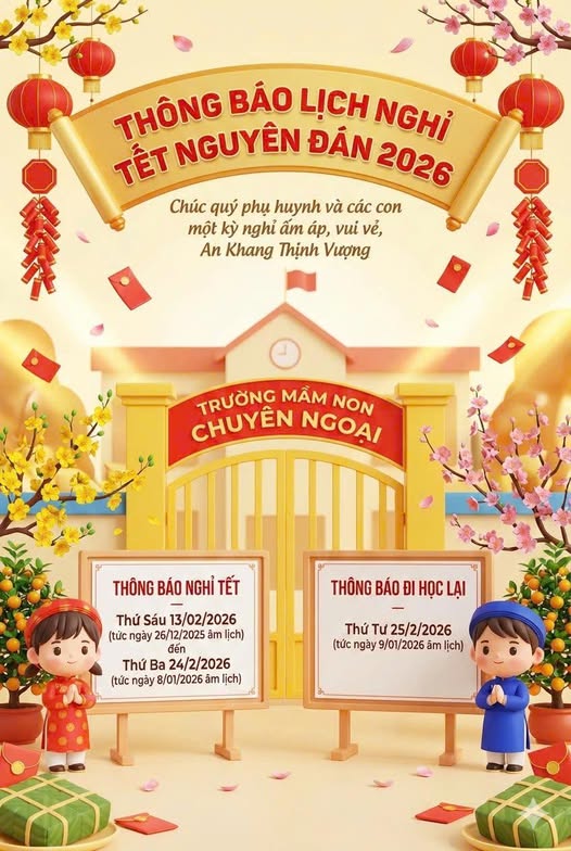 THÔNG BÁO LỊCH NGHỈ TẾT NGUYÊN ĐÁN 2026