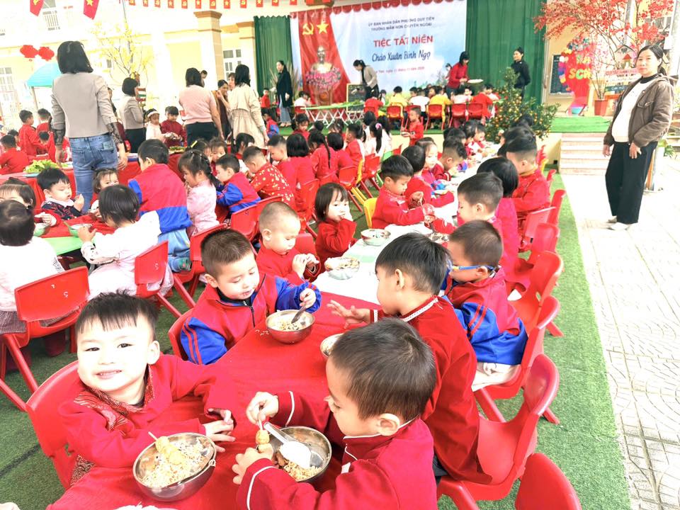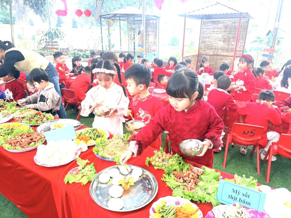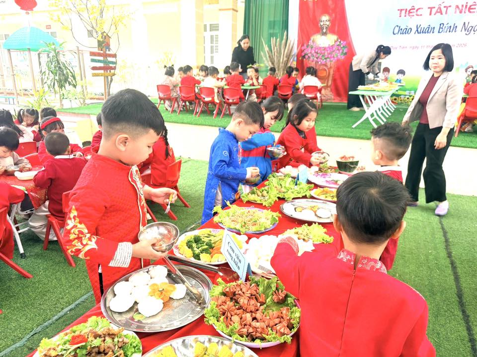 Buổi tiệc không chỉ là dịp để các con cùng nhau thưởng thức những món ăn ngon, vui chơi rộn ràng, mà còn là khoảnh khắc lan tỏa yêu thương và sẻ chia. Những phần quà Tết tuy nhỏ nhưng chứa đựng tình cảm, sự quan tâm của nhà trường và các bậc phụ huynh mong muốn mang đến cho các con một mùa xuân trọn vẹn và ấm áp hơn.